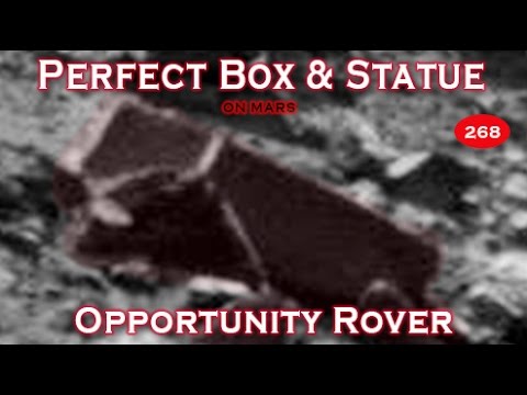 Após 10 anos de roaming em torno de Marte a Rover Opportunity ainda está radiante de volta imagens da paisagem marciana incrível para a Terra. Entre essas imagens pesquisadores independentes encontraram centenas de anomalias e estranho fenômeno que não deve estar ocorrendo em um "planeta morto frio" como todos nós fomos ensinados ao longo dos anos.Entre uma dessas novas fotografias escondidas na escuridão do lado de uma colina, fica uma caixa perfeitamente shapped, bem como uma formação estátua olhar que parece ter uma cabeça humana em forma para o início da mesma.