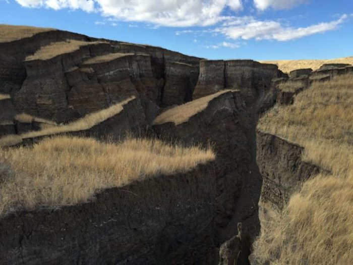 Esta rachadura gigante na terra apareceu nas últimas duas semanas em uma caça rancho nós nas montanhas Bighorn.Todo mundo aqui está chamando-o de "o corte". Crédito da imagem: SNS Outfitter & Guias